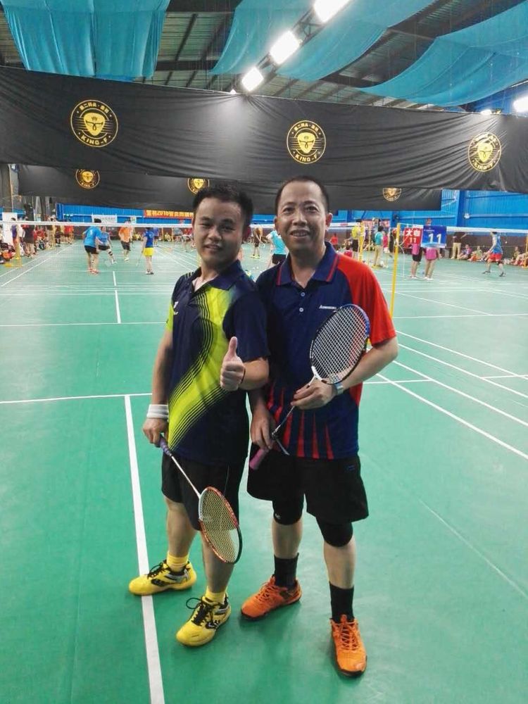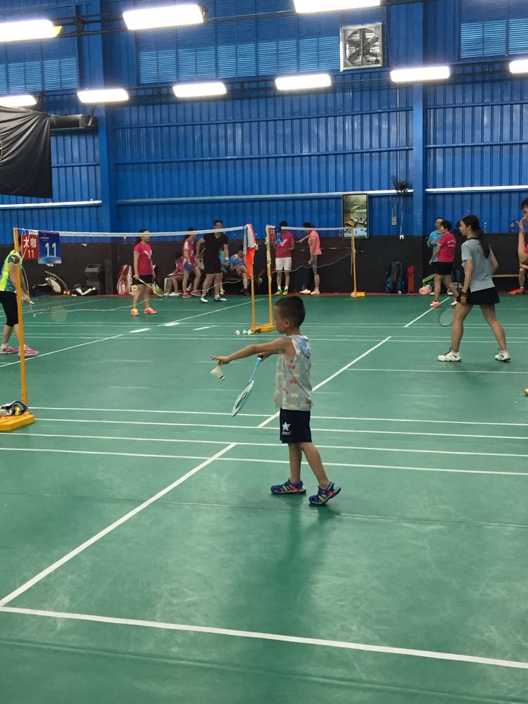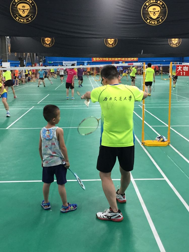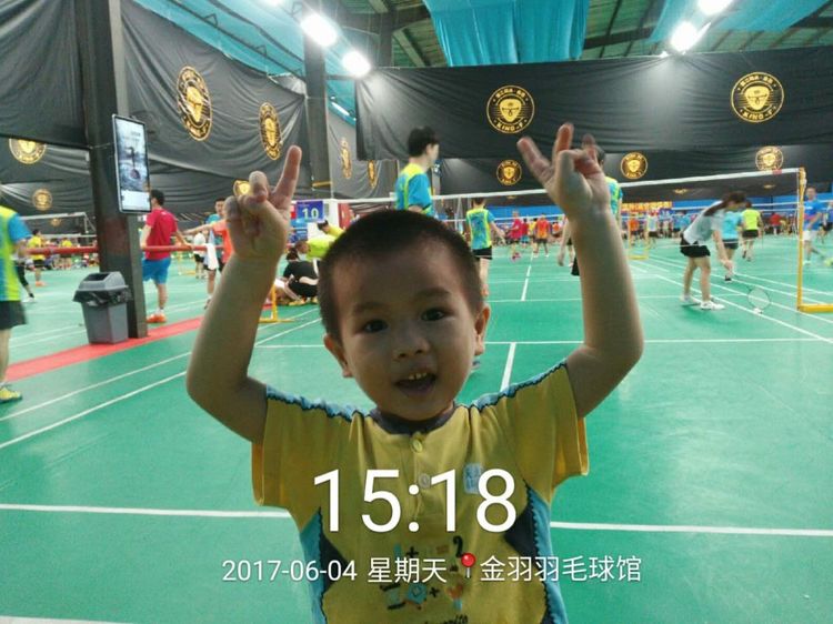 羽毛球场上的父与子。爱的传承。
