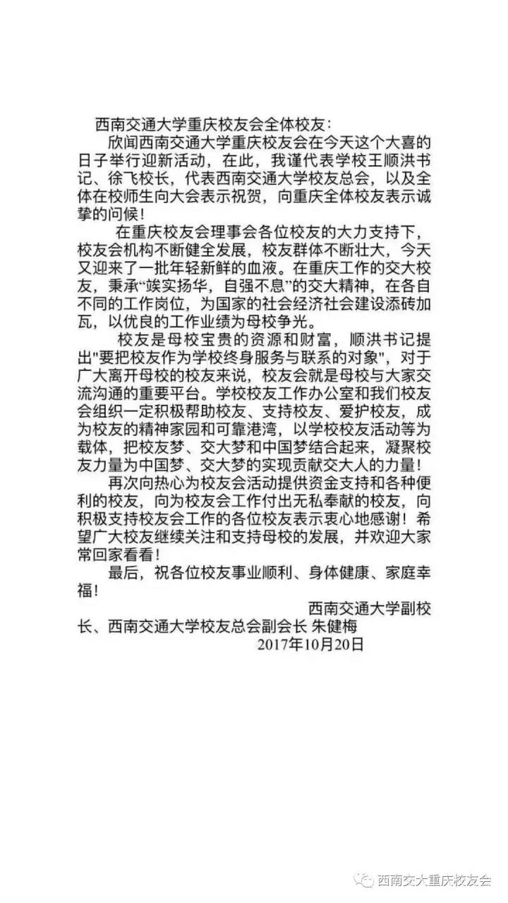 朱健梅副校长贺信