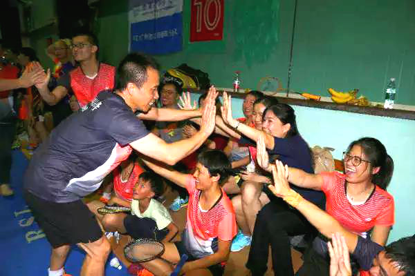 第四场VS武汉大学,甲组,不对,整个联盟都想干掉的老大(原谅我实在找不到更好的词来形容他家的强悍地位),随便一上场,气势压倒一大片。我们的男双们,放开所有的包袱和心里压力,咬紧牙拼了命地与之战斗。