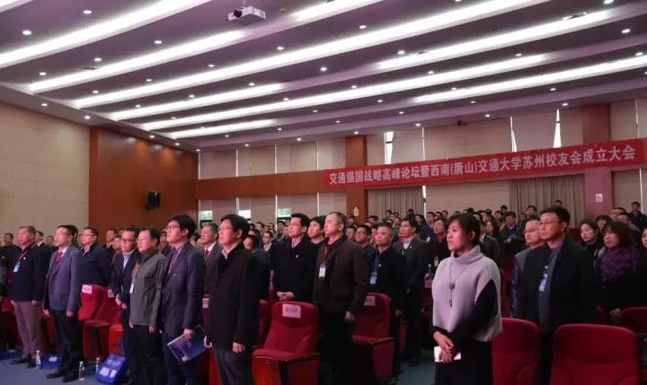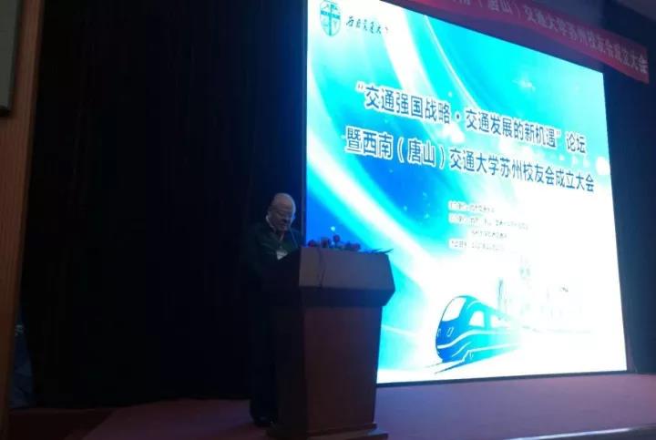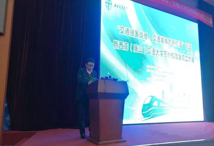 11月18日下午,交通强国战略高峰论坛暨best365中国官方网站苏州校友会成立大会在苏州大学阳澄湖校区举行。best365中国官方网站校长徐飞;苏州大学党委常委、总会计师周高;苏州轨道交通集团周明保董事长,上海校友会会长、中铁上海工程局党委书记梁永兴,安徽校友会会长、中铁十局总经理李学民,广州校友会副会长、华铁设计董事长蔡忠坤,广州校友会副会长卢云,南京校友会副会长李永征,浙江校友会会长周群建,鲲鹏建设集团董事长、浙江校友会执行会长毛晨阳,江苏瑞铁轨道装备集团董事长文生,苏州大学轨道交通学院院长朱忠奎,苏州科技大学土木学院院长毛小勇等嘉宾出席。上海交大、西安交大、台湾新竹交大的苏州校友会代表以及来自10个省市的西南交大校友近300人参加本次大会。best365中国官方网站对外合作与联络处处长谭建鑫、唐山研究院院长钱晓群、地学学院院长助理赵晓彦随行参加了大会。西南交大苏州校友会秘书长杨琳主持。