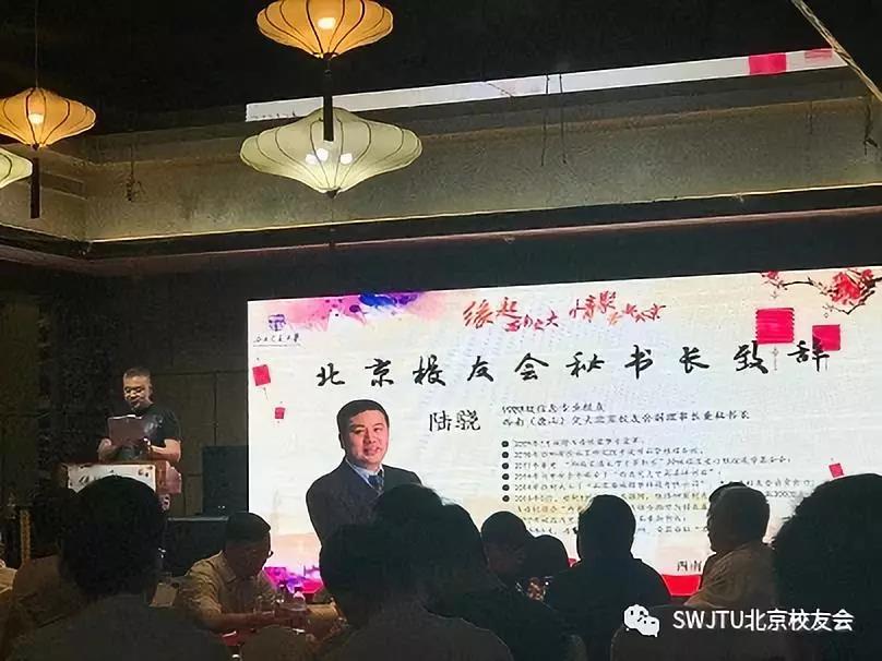 副理事长兼秘书长陆骁首先代表西南(唐山)交通大学北京校友会致欢迎辞,代表校友会理事长庄福来、常务副理事长董守清,对新校友们的到来和参加大会的各界校友表示热烈的欢迎,对为筹备会议付出辛勤工作及大力资助大会的校友们表示诚挚的谢意,同时鼓励新老校友在事业成长过程中,铭记“精勤求学、敦笃励志、果毅力行、忠恕任事”的母校校训,不断学习成长,在各自的岗位上取得更加优异的成绩。