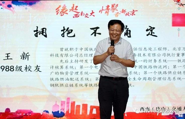 2018年9月15日,由西南(唐山)交通大学北京校友会主办的“缘起西南交大,情聚首都北京”2018来京校友见面会暨热点主题分享会在北京金霖酒店召开。北京校友会副理事长兼秘书长陆骁、北京校友会副秘书长兼办公室主任徐绍文、西南交大北京研究院孟祥梅、副秘书长王新、董淑敏、姚志立、董建宁、颜廷祥、胡小宁(兼任北京校友会青年分会会长)、代军、杨爱梅、高敏(兼任青年分会常务副会长)、北京校友会青年分会副会长刘兴亮、邹长云以及在北京工作的新、老校友代表近一百五十人,其中2018年新毕业来京工作和学习的近50余位校友参加此次大会,畅叙校友情,共谋发展策