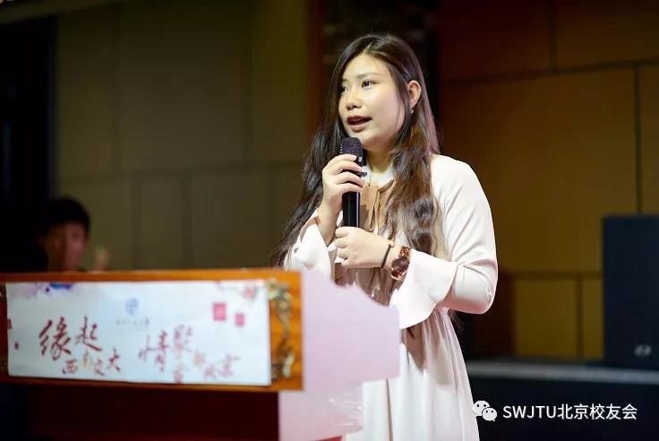 电气工程专业王雪纯作为2018届校友新生代表在发言中分享了作为新生力量来京的心路历程,感谢母校的培育之恩。