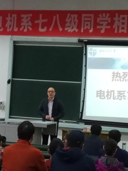 会上,电气工程学院党委书记罗乾超上台致辞,表达了学院领导们对校友们返校的欢迎,并介绍了学院现在的发展情况。