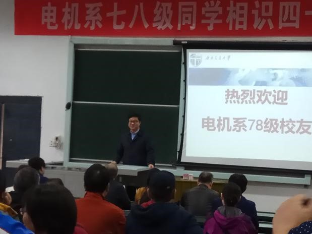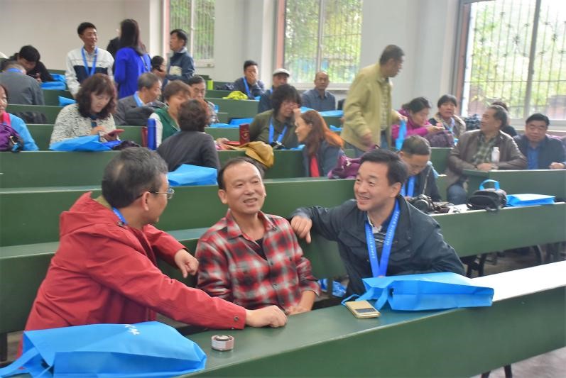上午9点,校友们三五成群,踏上学园小路,怀揣着思念与激动来到电机馆阶梯教室。四十年的离别,再相见,激动与怀念的氛围充斥着教室。大家入座,曾经的班长上台致辞:“四十年的离别,大家再次相聚,实属不易。今天我们又再次回到母校,追寻着四十年前的韶光岁月”。
