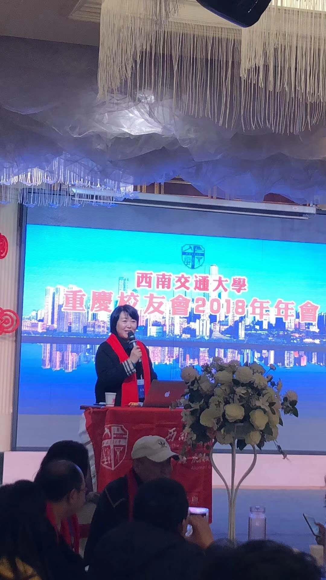 随后,机械学院综合事务中心主任沙晓雪登台发言。今年是交大机械百岁诞辰,沙主任把百年机械的历史沿革、世纪新篇和“智”造未来娓娓道来,真诚欢迎广大重庆校友、机械学子在5月18日再回母校,“交大百年机械诚邀您与母校共同见证机械百年!”