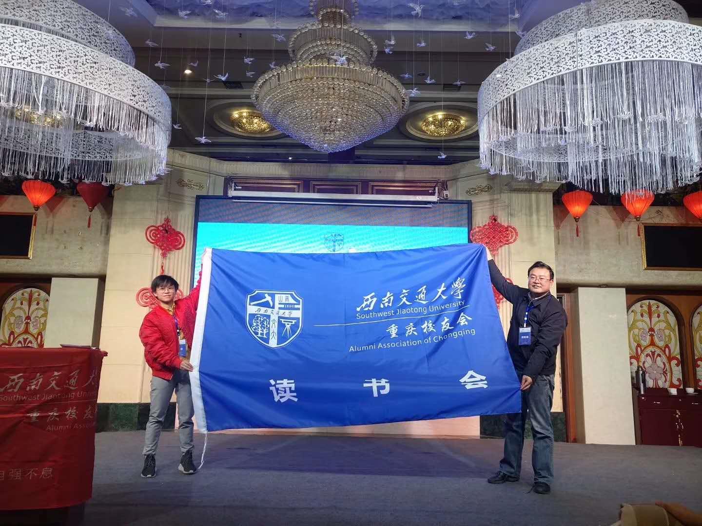 读书会授旗、赠书仪式上,重庆校友会读书群李小莉郑重地接过了谭建鑫处长手中的读书会会旗,重庆校友会将积极响应母校号召,读经典,读好书。