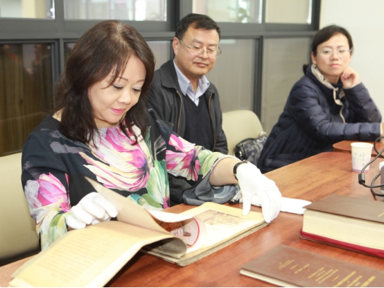 随后,茅为蕙博士参观了图书馆四楼各阅览室,听取了茅以升图书馆历史变迁和发展计划的介绍,实地查看了五楼规划中的茅以升展厅。在四楼研讨间,图书馆副研究馆员、学校校史专家杨永琪老师以“茅以升与母校”为主题,向茅为蕙博士和与会师生代表生动讲述了茅老与母校一生的深厚情缘,分享了茅以升求学、治校以及家族的往事,引起大家极大的兴趣;现场介绍和展示了茅以升在不同年代留存、寄赠母校图书馆的珍贵文献文物,包括硕博论文、钱塘江工程计划书和摄影集等,茅为蕙博士饶有兴致地一一翻阅,为祖父杰出的才华、超前的眼光和真挚的母校情怀深深打动。当看到图书馆收集到的她小时候与祖父在一起的老照片时,勾起了她与最宠爱她的祖父之间幸福而温暖的回忆。她说,这次能回到祖父的母校感到非常高兴,听到了祖父一生更多生动的故事,体会到了他对母校的真情。我最难忘小时候在上海的一次音乐会演出,祖父恰巧在上海,跟他的学生赵祖康市长一起来观看,给了我莫大的惊喜和鼓励。我常对人说,我姓茅,茅以升的茅。在我眼中,爷爷不仅是学霸,管理才能也突出,音乐艺术的什么都通。茅家特别注重教育,尊重个性发展,茅家的第三代拿博士学位的不少。我很骄傲有我们家庭这样的血液,对学识、做人的看重和要求。