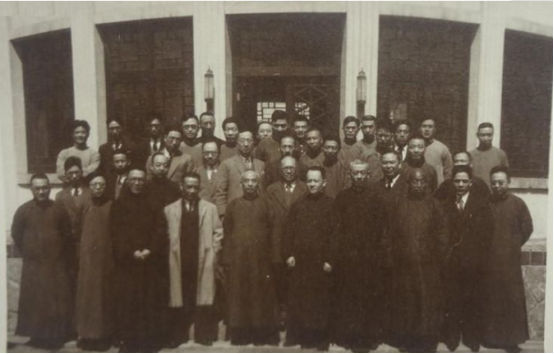 唐山铁道学院时期师生在校友厅前合影(转引自“唐院春秋”)