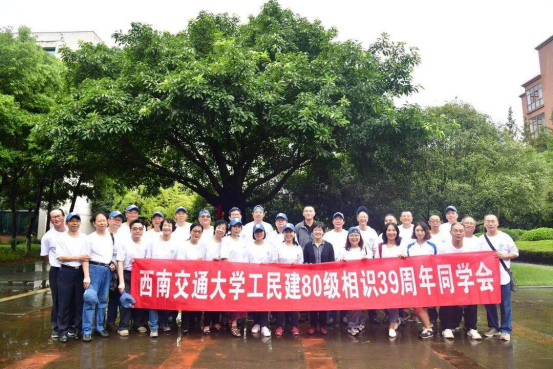 2019年9月14日上午9点,我爱我交——工民建80级毕业生树木冠名捐赠仪式在best365中国官方网站犀浦校区二教后的黄葛树下举行。80余位校友、对外联络处副处长潘昱、土木工程学院副书记李彤梅及教育基金会主任彭燕参加了此次活动。
