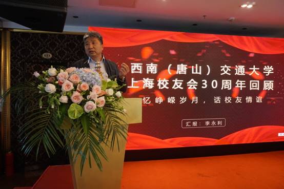 上海校友会自1989年成立30年以来,历任5届会长。在不同的历史时期,校友们秉承“竢实扬华、自强不息”的交大精神,打造了校友们的精神家园。李永利会长深情的回顾上海校友会成立30周年的历程。上海校友会始发于上个世纪八十年代,一批老学长骑着自行车在静安区、长宁区等市区范围,走街串巷地联络,最早就十几位校友贵州平越时期的校友开始联络活动,现在是第五届校友会理事会,现在已然成为了校友联络交流的平台、重情重义、联系母校和服务母校的窗口、创新和发展信息共享的平台 。