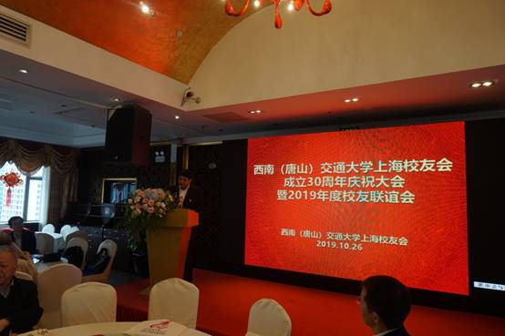 2019年10月26日上午,上海校友会成立30周年庆祝大会暨2019年度校友联谊会在新梅华东大酒店隆重召开,我校桂富强副书记率唐山研究生院(研究院)直属党支部书记刘伟、对外合作与联络处副处长阮波和校友工作办公室主任刘堃应邀出席,与近300名在沪校友欢聚一堂,共忆校友会自初创、规范、传承到创新发展的不凡历程,敬怀前辈校友情系母校奉献国家的卓越成就,共话母校繁荣发展的新时代。