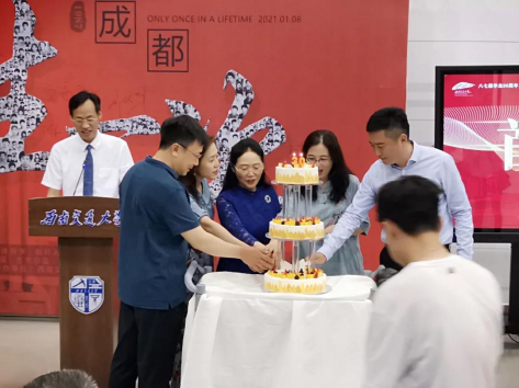 之后,副校长朱健梅与几位校友代表带着对《人生一次》纪录片的祝福与感慨,共同切下首映礼蛋糕。