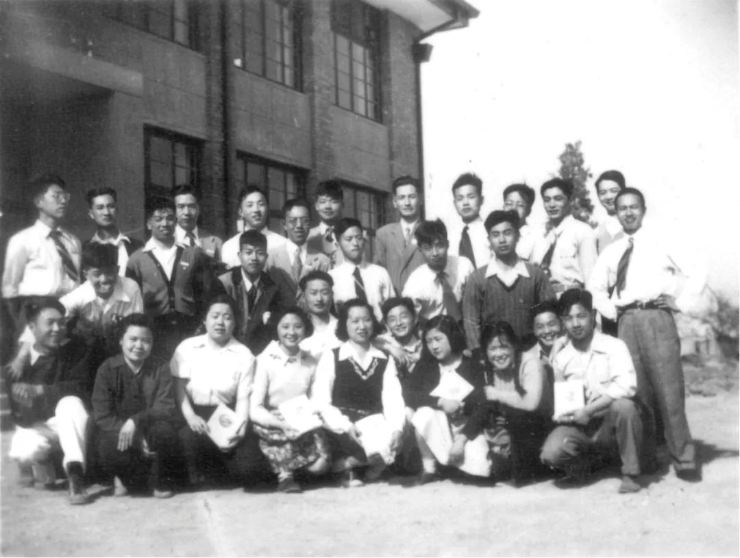 唐山交通大学时期彭一刚(2排右2)及建筑系同学与系主任徐中教授(后排右5)等教师在一起