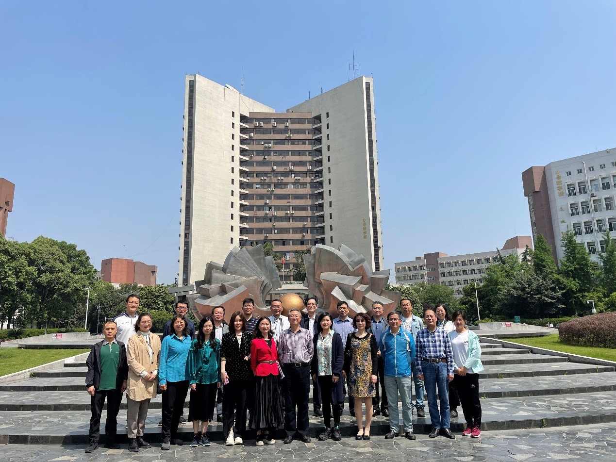 最后,参会校友和老师们在九里校区标志性雕塑前合影留恋。