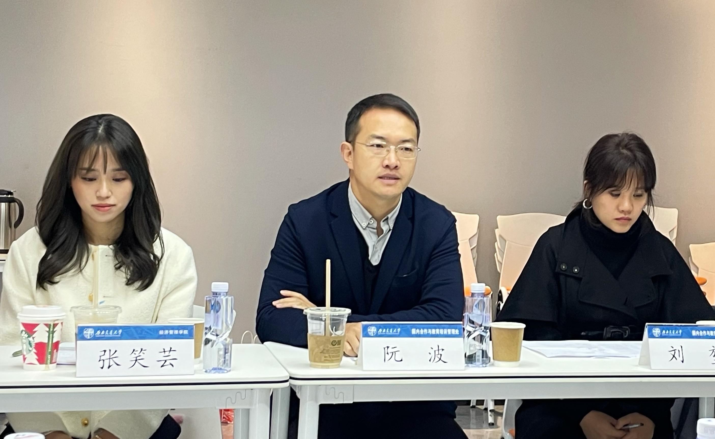 主持人进行简短的介绍和互动后,国内合作与教育培训管理处副处长阮波介绍了此次交流座谈的目的,他说,校友首先是院友,学院是校友工作的基石,学校第十五次党代会报告对新时期校友工作提出了新的具体要求,希望能通过院校两级的互动交流,积极探索院校两级校友工作机制和扁平化的校友工作管理模式,大家凝心聚力、集思广益,凝聚最大共识,形成最大合力,一起助推学校校友工作上新台阶。国内合作与教育培训管理处校友工作办公室主任刘堃详细介绍了学校第十五次党代会报告中关于新时期校友工作的要求、建议和具体的工作方向、方法。