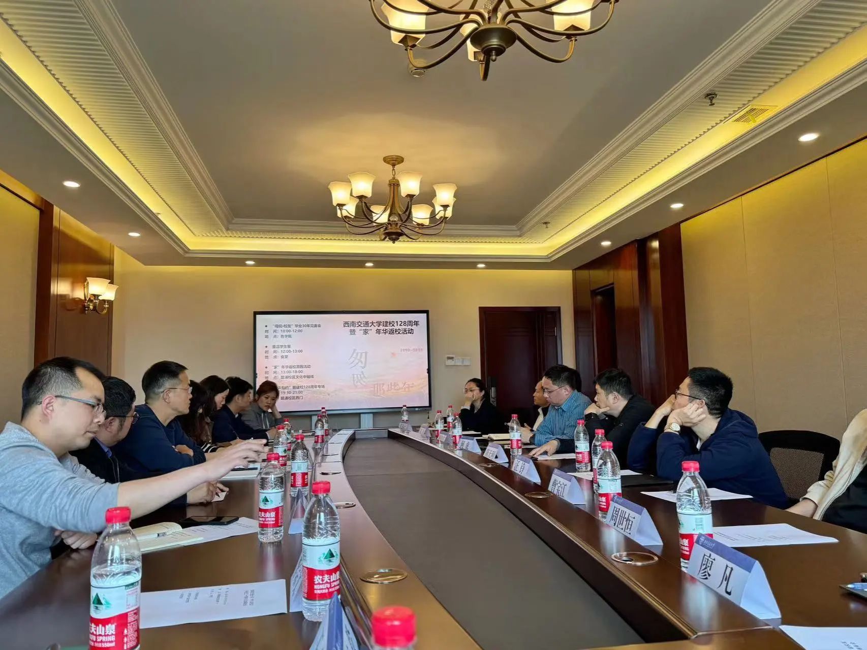 近日学校召开了1990级校友毕业三十周年活动筹备会。90级校友联络人、各相关学院校友工作联络人、合作发展处副处长阮波等参与会议共同讨论了此次校友返校活动的方案,鼓励校友们积极建言献策,共商共议了返校时间确定为2024年5月25日(周六)、返校具体流程、食宿安排等校友返校活动开展的细节和事项。会议由合作发展处校友联络科科长刘堃主持。