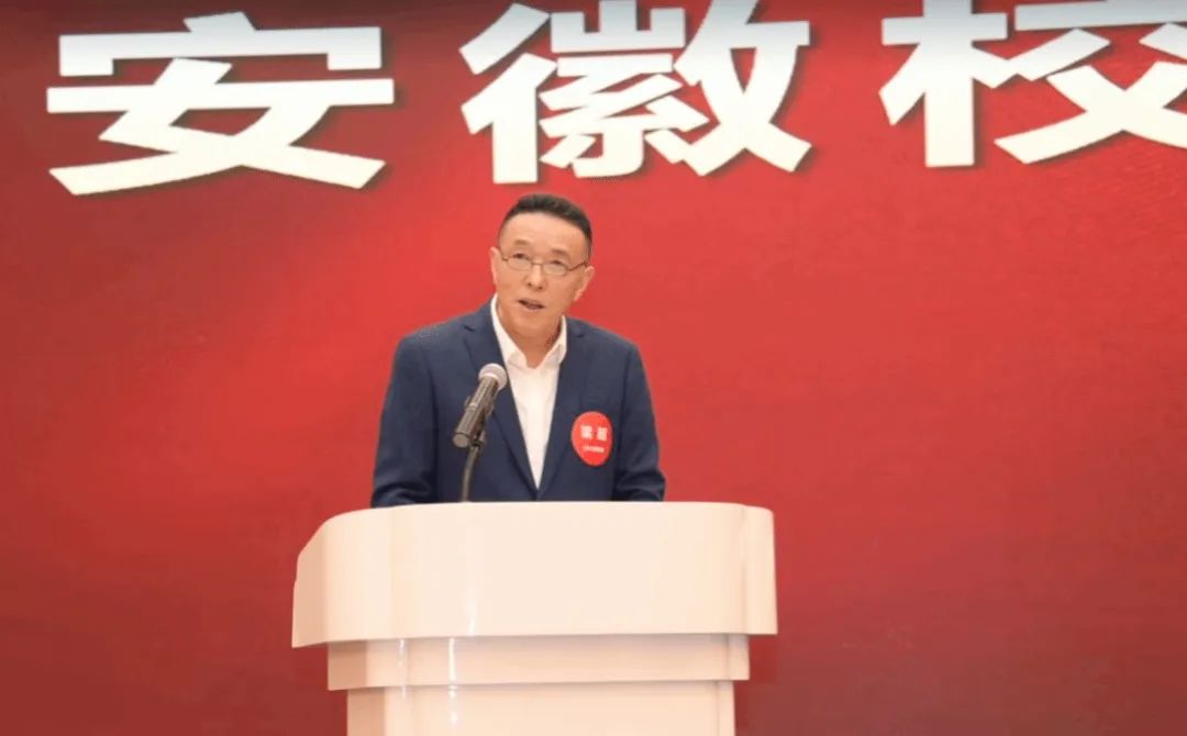 安徽校友会会长梁超在讲话中回顾了校友会十年来的发展历程,对母校领导的到来表示热烈欢迎,并展望未来发展。他表示,安徽校友会将持续强化校友服务,推动学校学科资源与安徽产业对接,扩大组织影响力,探索校企合作新路径,助力地方经济建设。