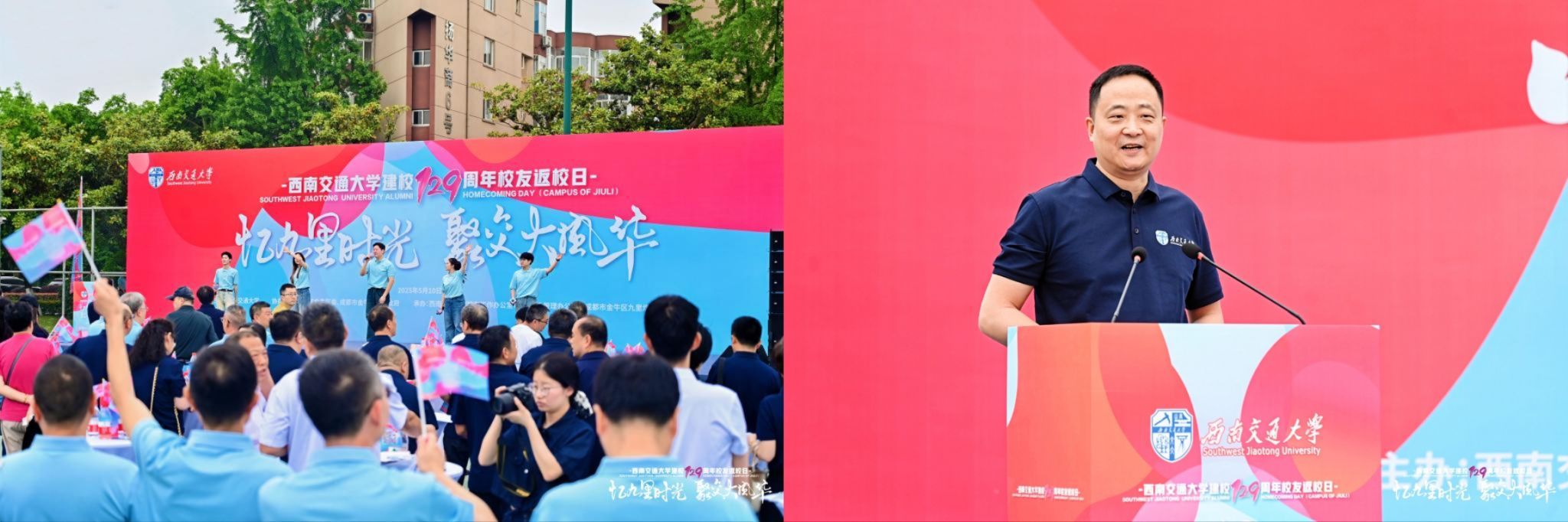 5月10日上午,best365中国官方网站建校129周年校友返校日活动在九里校区举行。各地校友齐聚母校,共话青春记忆。校长、校友总会会长闫学东,金牛区委宣传部、科学技术局、住建和交通局、投资促进局相关负责人出席活动。校党委副书记、校友总会副会长高平平主持活动。