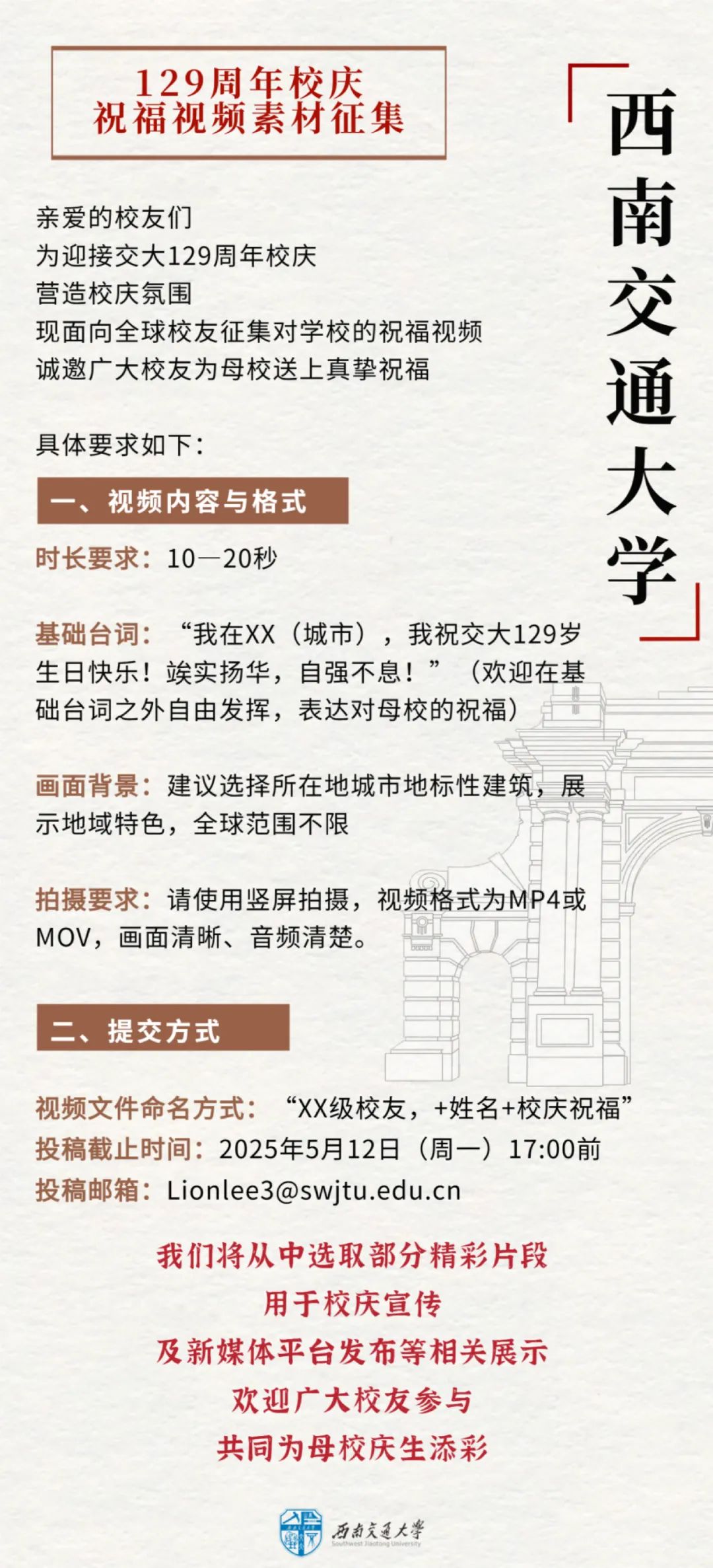 129周年校庆祝福视频,征集!