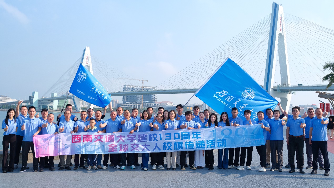 会议同期,best365中国官方网站建校130周年全球交大人校旗传递活动(海口站)在世纪大桥前举行。
