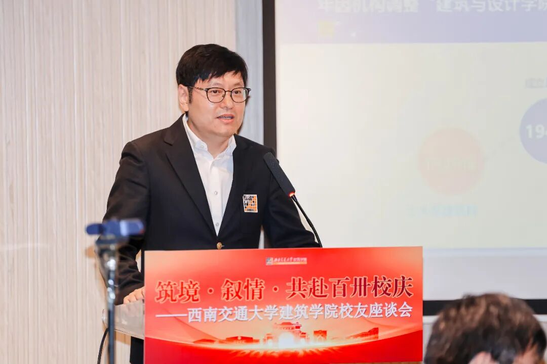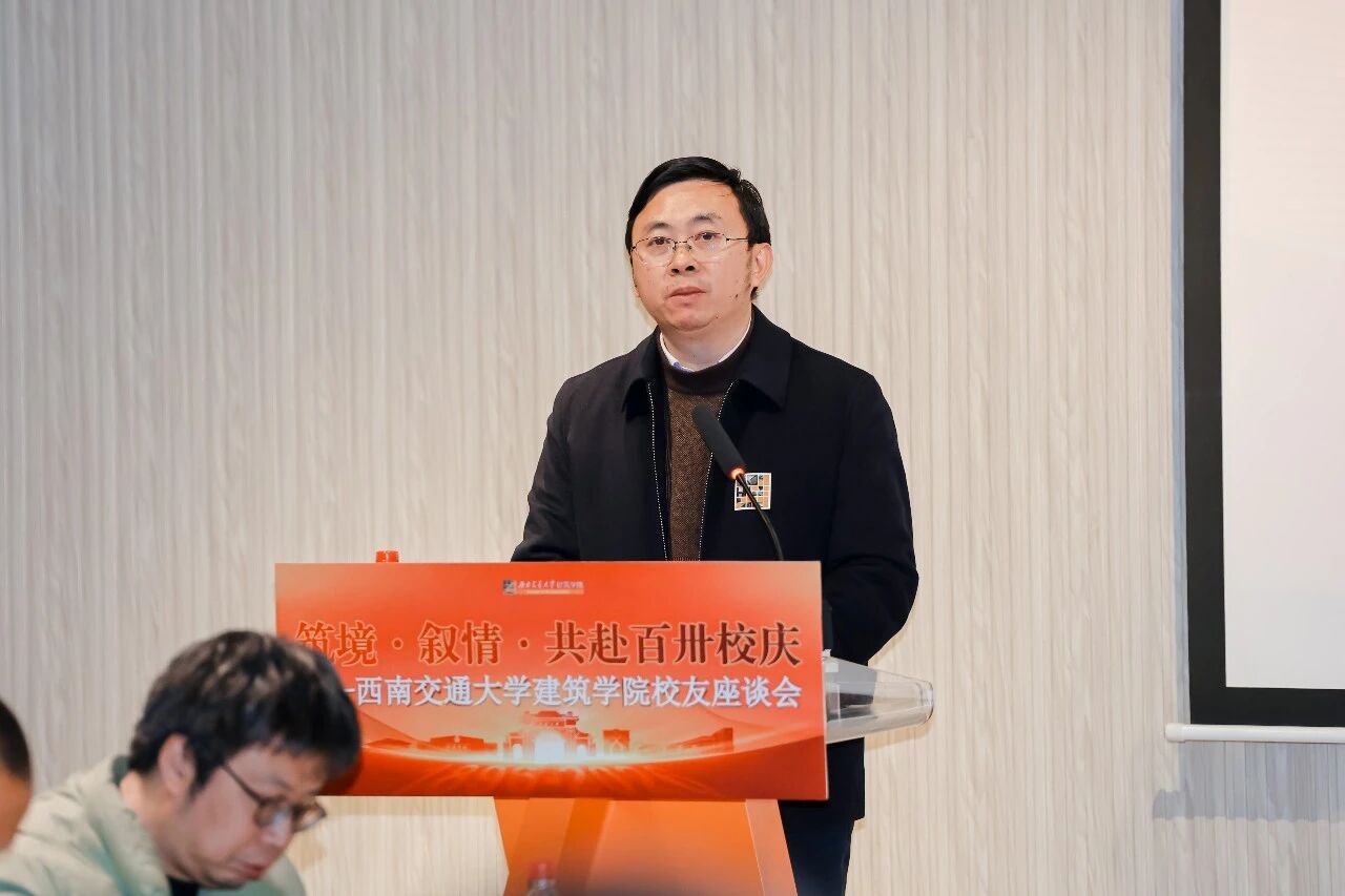 高平平代表学校向返校校友表示热烈欢迎,并向长期以来关心支持学校与建筑学院发展的前辈、老师和校友致以崇高敬意。他介绍了学校近年来在学科建设、教育教学、科研创新、人才引育及校园环境提升等方面取得的进展,并强调,一代代交大校友以担当实干彰显家国情怀,是学校最宝贵的财富。他诚挚邀请广大校友在校庆130周年之际重返母校,同庆华诞、共创未来。