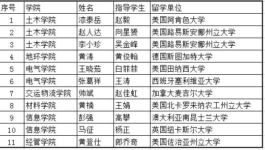 近日,国家留学基金委公布了2014年“博士生导师短期出国交流项目”录取名单,我校11名申请人全部顺利入选,将分别赴国外合作高校、科研机构开展为期一个月的访问交流。往返国际旅费、在外生活费由国家留学基金委按高级访问学者标准支付。
