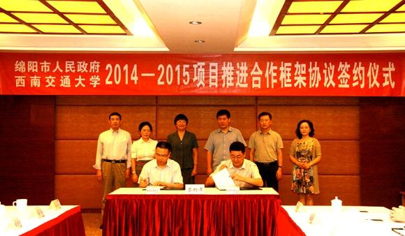 继西南交大、中铁二院工程集团有限责任公司与绵阳市人民政府于2013年6月签署战略合作框架协议后,学校积极落实与绵阳市的合作,取得了不少成果,而本次学校与绵阳市政府签订项目合作推进协议则是战略合作框架协议的细化和落实,同时,也成为了双方深入开展合作过程中的一个重要的里程碑。根据项目合作推进协议,学校将与绵阳市将在轨道交通、北斗导航、地理信息系统、新风控制系统等方面加大合作,同时,以此为契机在绵阳国家科技城创新中心二期组建国家级工程技术研究中心和绵阳研究院,以汇聚学校各方面的科技、人才资源和项目,实现学校成果在绵阳的转化和产业化。