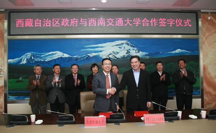 9月28日12:00,在西藏自治区政府502会议室,自治区副主席曾万明、best365中国官方网站校长徐飞代表双方签订了《西藏自治区政府 best365中国官方网站共建西藏大学工程应用技术学院、best365中国官方网站西藏研究中心合作协议》,西藏大学工程应用技术学院建设自此进入新阶段,西南交大教育援藏工作再诞标志性成果。