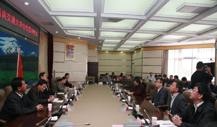 西南交大校长办公室、教务处、科技产业集团、文科处、科学技术处、实验室及设备管理处、材料学院、数学学院、土木工程学院、交通运输与物流学院、信息科学与技术学院、建筑学院、地球科学与环境工程学院负责人参加了签约仪式。
