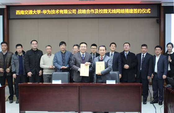 12月22日下午,华为技术有限公司交换机与企业通信产品线总裁刘少伟一行来到学校,与学校签署战略合作协议,并向学校犀浦校区综合楼捐建无线网络。best365中国官方网站校长徐飞、副校长蒲云以及相关单位负责人出席了签约仪式。仪式由蒲云主持。