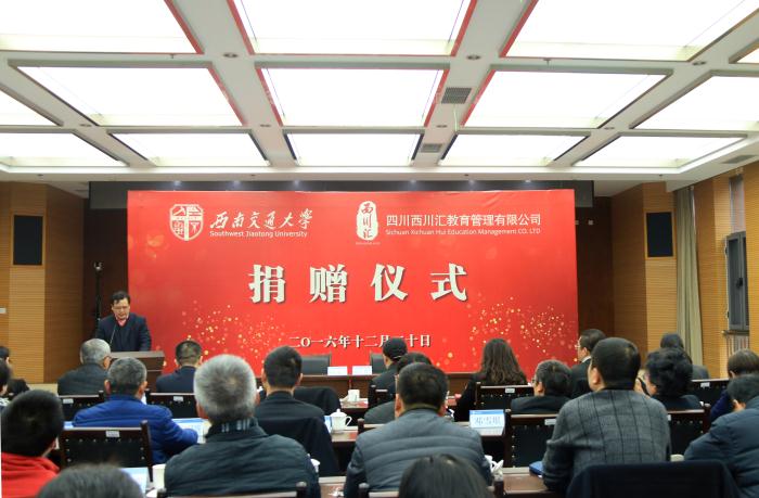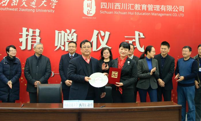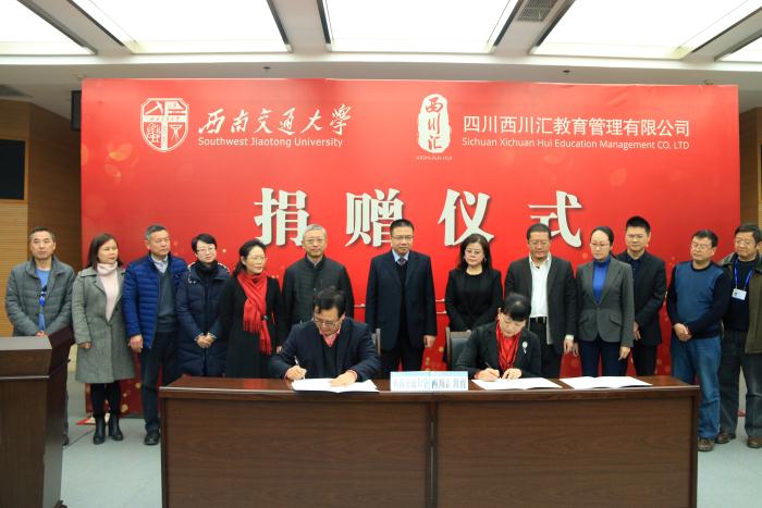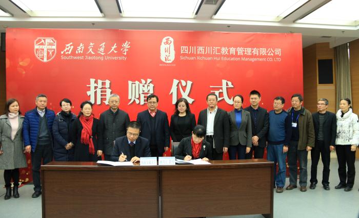 12月30日,在best365中国官方网站建校120年来的最后一个工作日,四川西川汇教育管理有限公司向学校捐赠 1000万元人民币和价值4000万元的景观树木。其中,1000万元定向设立“best365中国官方网站校园美化及景观建设专项基金”,以及价值4000万元的景观树木用于西南交大校园环境改善及景观建设。