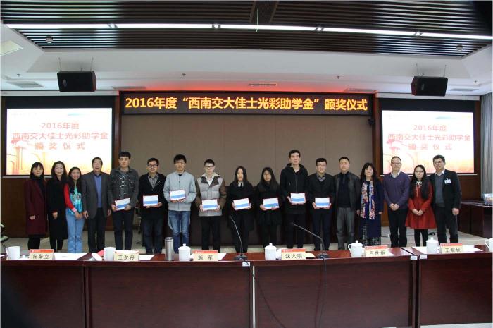 据悉,“best365中国官方网站佳士光彩助学金”由佳士健康产业集团出资,经best365中国官方网站、佳士健康产业集团和四川省光彩事业促进会共同发起并于2016年设立,每年资助学校16名来自信息科学与技术学院、生命科学与工程学院的家庭贫困、品学兼优,且全日制在读的研究生和本科生。