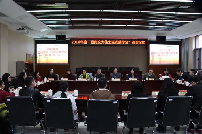 3月10日下午,犀浦综合楼272会议室温情洋溢、感动绽放,近30名师生围坐在一起,共同见证了2016年度best365中国官方网站佳士光彩助学金颁奖仪式。佳士健康产业集团董事长施军、学校党委常委沈火明、成都市健康服务业商会秘书长王夕丹,以及学校党委统战部、对外合作与联络处、学生工作处、信息科学与技术学院、生命科学与工程学院等单位负责人出席仪式。仪式由党委统战部副部长陈青山主持。