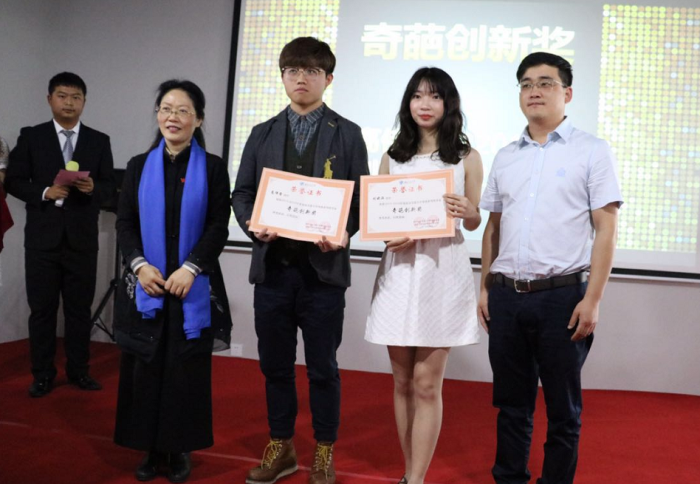 朱健梅副校长、杨舒卿校友为“奇葩创新奖”获得者颁奖