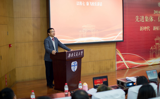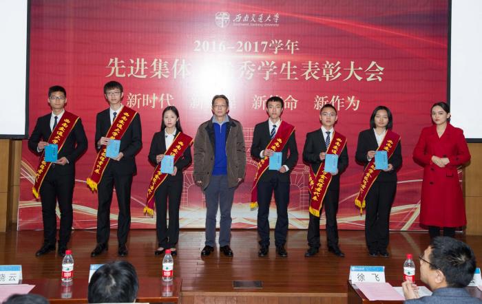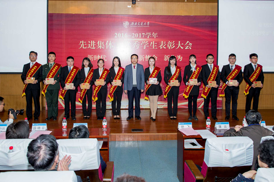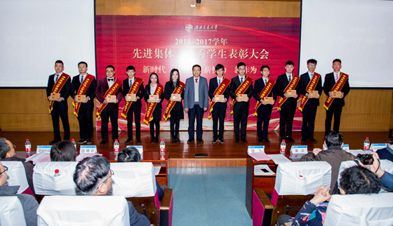12月14日下午,我校2016-2017学年先进集体、优秀学生表大会在犀浦校区顺利召开。校党委副书记、校长徐飞,校党委副书记晏启鹏,副校长蒲云,副校长冯晓云,教务处处长郝莉,研究生院常务副院长周先礼,对外合作与联络处处长谭建鑫,招生工作处处长甘灵,学生工作处处长高平平,校团委书记廖军出席本次表彰大会,各学院学生工作负责人以及校友代表、校亲代表、教师代表、辅导员代表、学生代表参加大会。大会由校党委常委沈火明主持。