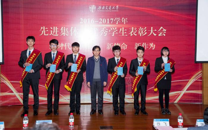 最后颁发的奖项是奖助学金,由校领导颁奖。设奖人代表、成都合联众创科技有限公司总经理杨舒卿校友在颁奖词中说道:“精勤求学,敦笃励志,他们是社会主义核心价值观的积极践行者;果毅力行,忠恕任事,他们是‘五有’交大人的执着探路人。数年寒窗,今朝光灿,躬行只觉纸上浅;文轨车书,以郅大同,勇担复兴任,愿他们乘骐骥而驰跃,抟扶摇而直上,创人生之辉煌”。