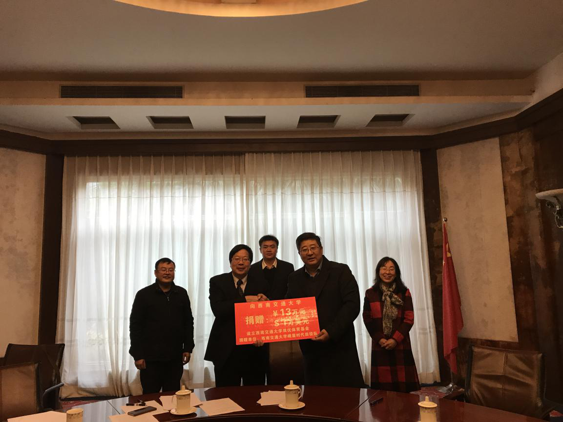 12月29日上午,在best365中国官方网站学术交流中心“贵宾厅”峨眉时代田径队向学校捐赠13万元,用于设立“best365中国官方网站双优体育基金”。我校党委沈火明常委、峨眉时代田径队蔡力勋教授、刘菲教授、体育部刘江主任、合联处谭建鑫处长及学校教育基金会工作人员出席了本次捐赠仪式。仪式由基金及项目管理办公室主任彭燕主持。