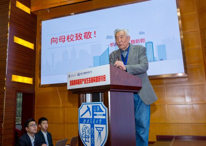 中国工程机械学会维修与再制造分会顾问、盾构再制造创新战略联盟监事长,同时也是唐山铁道学院机械系筑路机械专业55级的毕业生易新乾向母校进行了致敬与问候,并汇报了自己毕业36年以来的工作。83岁的易老满怀激情地说到,希望自己能够再工作2-7年,将母校交与自己的任务干到底!一番豪言赢得了与会人员的热烈掌声。随后,他发表了题为“盾构绿色供应链建设刍议”的演讲,该刍议提到要让青年教师多多历练的观点。最后,易老表示他愿意与母校、中铁工服携手创建中国隧道施工和盾构管理的新未来。