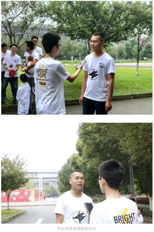 揭牌仪式之后,李琦学长作为学生代表接受了采访。当问到树作为献给学校的礼物寄予着校友们对学校怎样的寄托时,学长表示:“我们相当于把我们的根深深地扎在学校里,以后对学校会有更多的关注,也希望能为学校做出更多的贡献。同时母校本来就是我们的根,这次认捐活动正是我们认根寻源的过程,以此来表达对母校的感谢。”