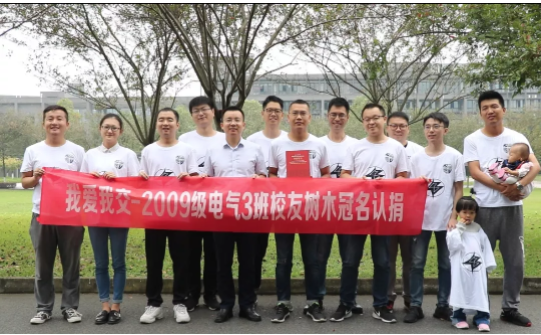 2019年10月2日上午10时,我爱我交——电气工程09级毕业生树木冠名认捐仪式在best365中国官方网站犀浦校区综合楼前垂丝海棠树下举行。十余位校友、电气学院副书记陈勇参加了此次活动。
