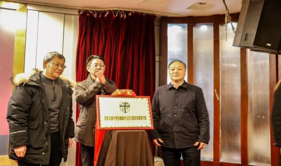仪式上,蒲云副校长与四川省文化和旅游厅科技教育处处长王燕林、公共管理与政法学院院长王永杰教授共同为研究院揭牌。