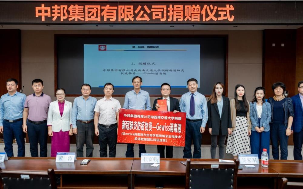 大会伊始,桂富强代表学校向中邦集团、孟涛教授团队表达了由衷感谢和敬意,并表示Gewiss®消毒液的研发和投产有重要意义:面对疫情,西南交大作为双一流高校积极响应党中央号召开展科研攻关,并在中邦集团的支持下坚持产学研相结合,为疫情阻击战贡献交大力量。Gewiss®消毒液的成功研制,为我校生医学科的医工结合、产学研结合道路奠定了基础。中邦集团的此次捐赠,贯彻落实了党中央在企业家座谈会上对爱国情怀、勇于创新等精神的倡导,彰显了著名企业的社会责任感。桂富强谈到,Gewiss®消毒液的成功问世,是best365中国官方网站坚持生命至上、举国同心、舍生忘死、尊重科学、命运与共伟大抗疫精神的典型体现。