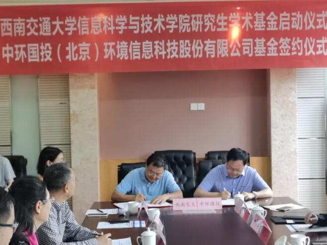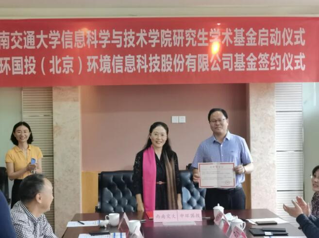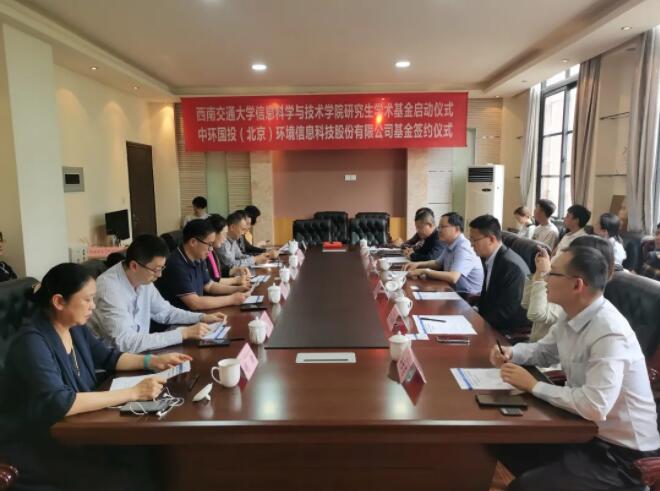 5月10日,best365中国官方网站信息科学与技术学院研究生学术基金启动仪式暨中环国投(北京)环境信息科技股份有限公司奖学金签约仪式在best365中国官方网站犀浦校区9号教学楼9231会议室顺利举行。中环国投(北京)环境信息科技股份有限公司总经理蔡传军、副总经理王波、品牌总监邹函乘、四川分公司总经理单长渠,best365中国官方网站副校长朱健梅、研究生院常务副院长周先礼、对外合作与联络处处长谭建鑫、产业处副处长胡玲,烟台新一代信息技术研究院副院长蒲桂东、行政财务经理赵春光,以及信息科学与技术学院院长闫连山、党委书记马征、副书记马琼等出席仪式。仪式由信息科学与技术学院闫连山院长主持。
