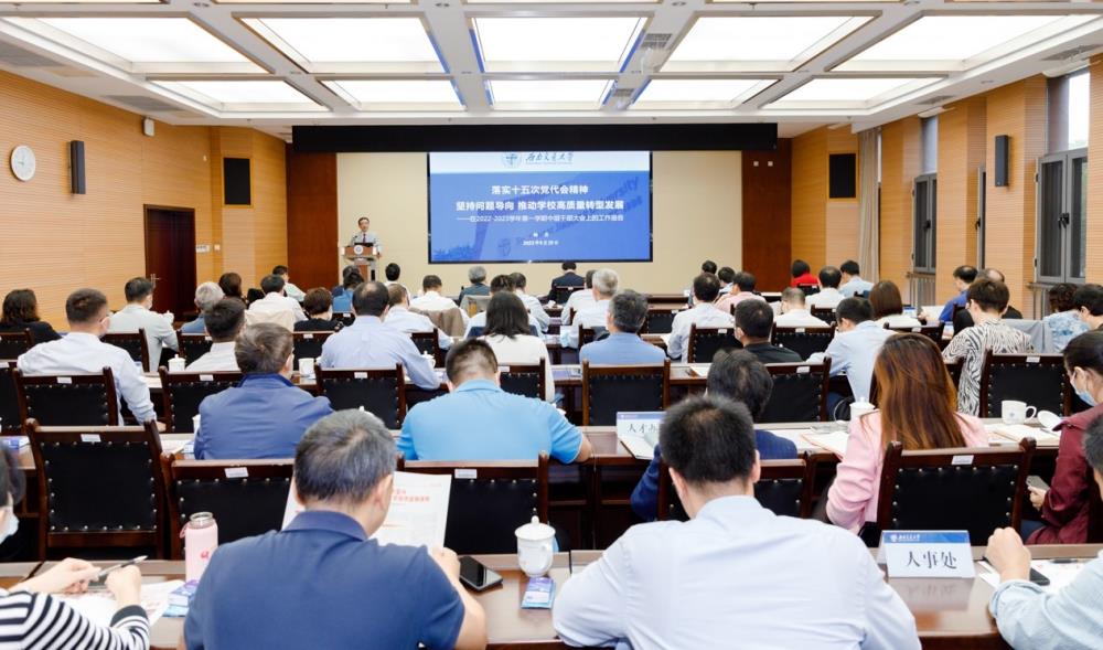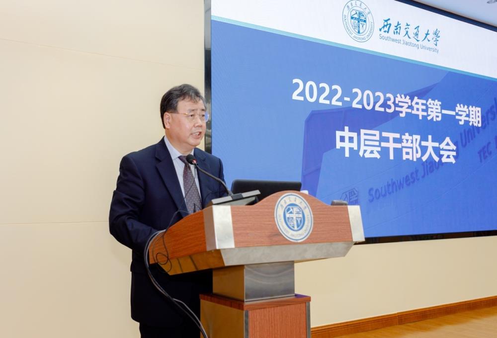 9月30日上午,学校召开2022-2023学年第一学期学校中层干部大会,因疫情防控要求,犀浦校区综合楼148会议室为会议主会场,另设5个分会场。校长杨丹总结回顾2022年上半年学校主要办学成绩、部署学校2022年下半年重点工作。校党委书记王顺洪主持会议并讲话。
