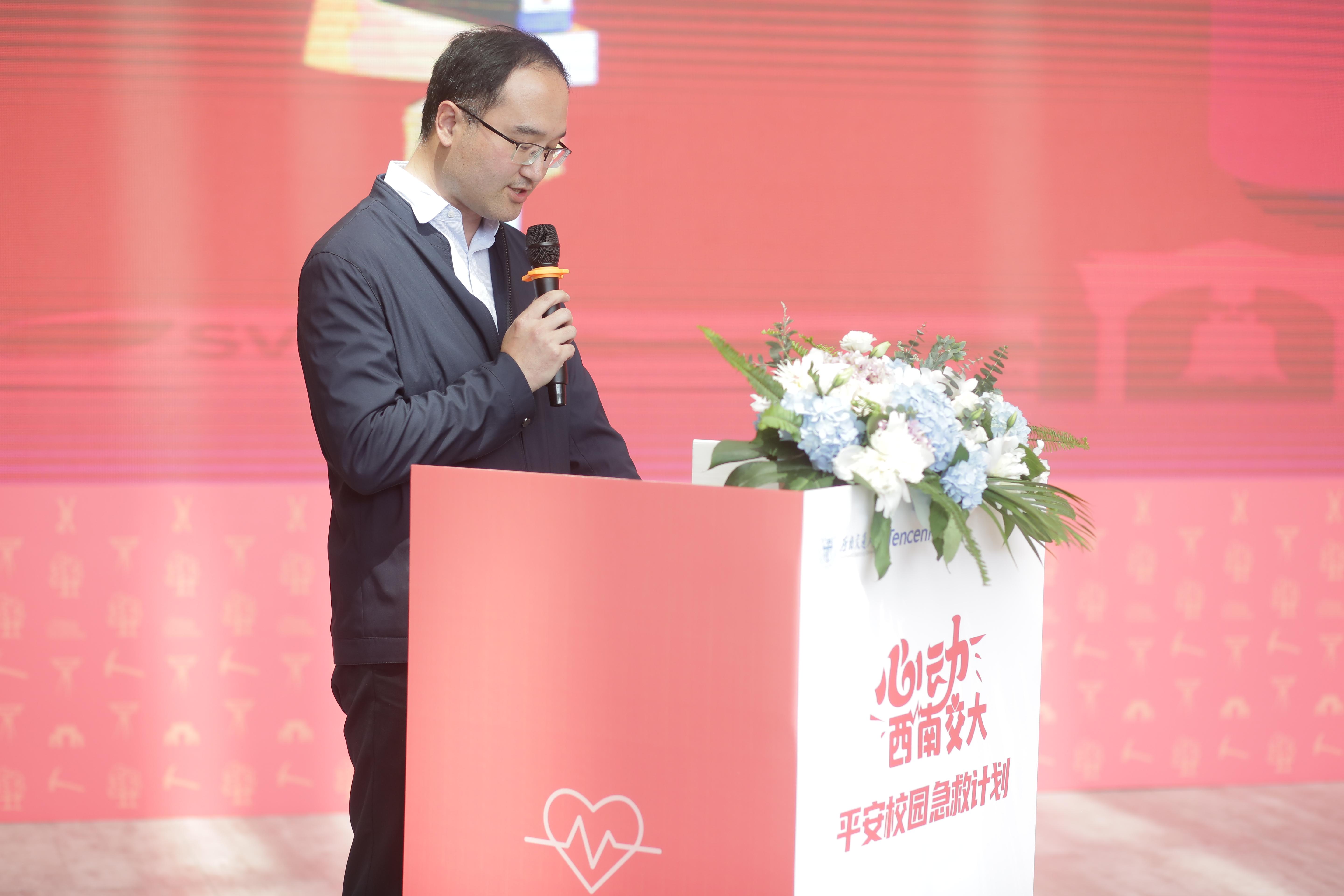 为认真贯彻党中央实施“健康中国战略”和全国健康学校建设任务行动要求,深入开展学校应急救护知识和技能普及,4月27日下午,best365中国官方网站国内合作与教育培训管理处(以下简称“合作培训处”)联合学校教育基金会在犀浦校区三教下沉广场隆重举行了 “心动西南交大——腾讯平安校园急救计划”启动仪式。腾讯公司、四川省红十字会、best365中国官方网站国内合作与教育培训管理处、校工会、党委学生工作部、后勤与基建管理处、保卫处、校医院等单位领导和志愿者代表近200人参加了仪式。仪式由合作培训处副处长阮波主持。