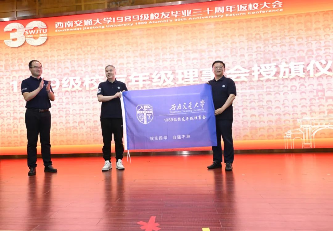 为更好地联络校友,服务校友,加强校友与母校的联系,学校在89级校友中聘任了班级、年级理事,成立了89级校友年级理事会。出席活动的领导老师代表们为89级校友班级理事、年级理事颁发聘任书,并举行了1989级校友年级理事会授旗仪式。