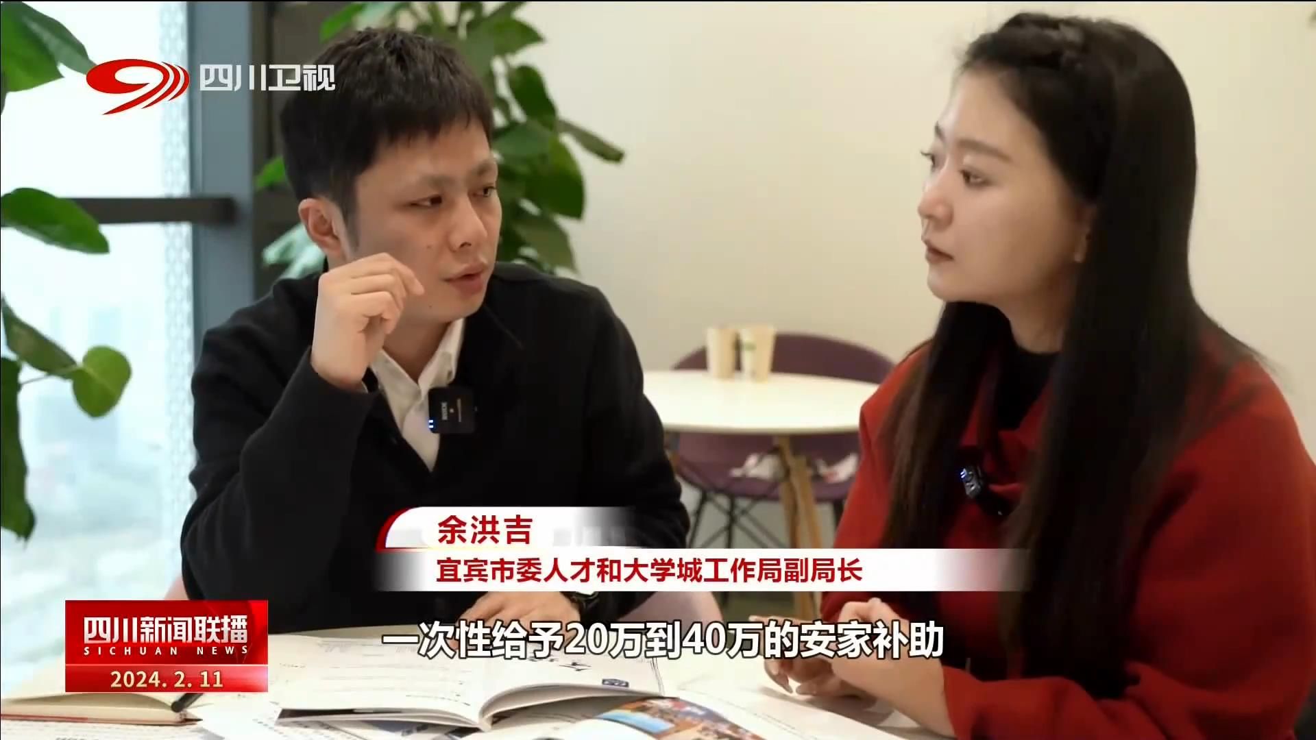 宜宾市委人才和大学城工作局副局长 余洪吉:一个是安家补助,符合我们人才引进标准的硕博人才,一次性给予20万到40万的安家补助,免费提供人才公寓入住。我们整个宜宾大学城科创城,搭建了一个巨大的平台,我们有各种各样的高校,有科研院所,重点的企业,这些都是为人才发挥作用提供支撑的。